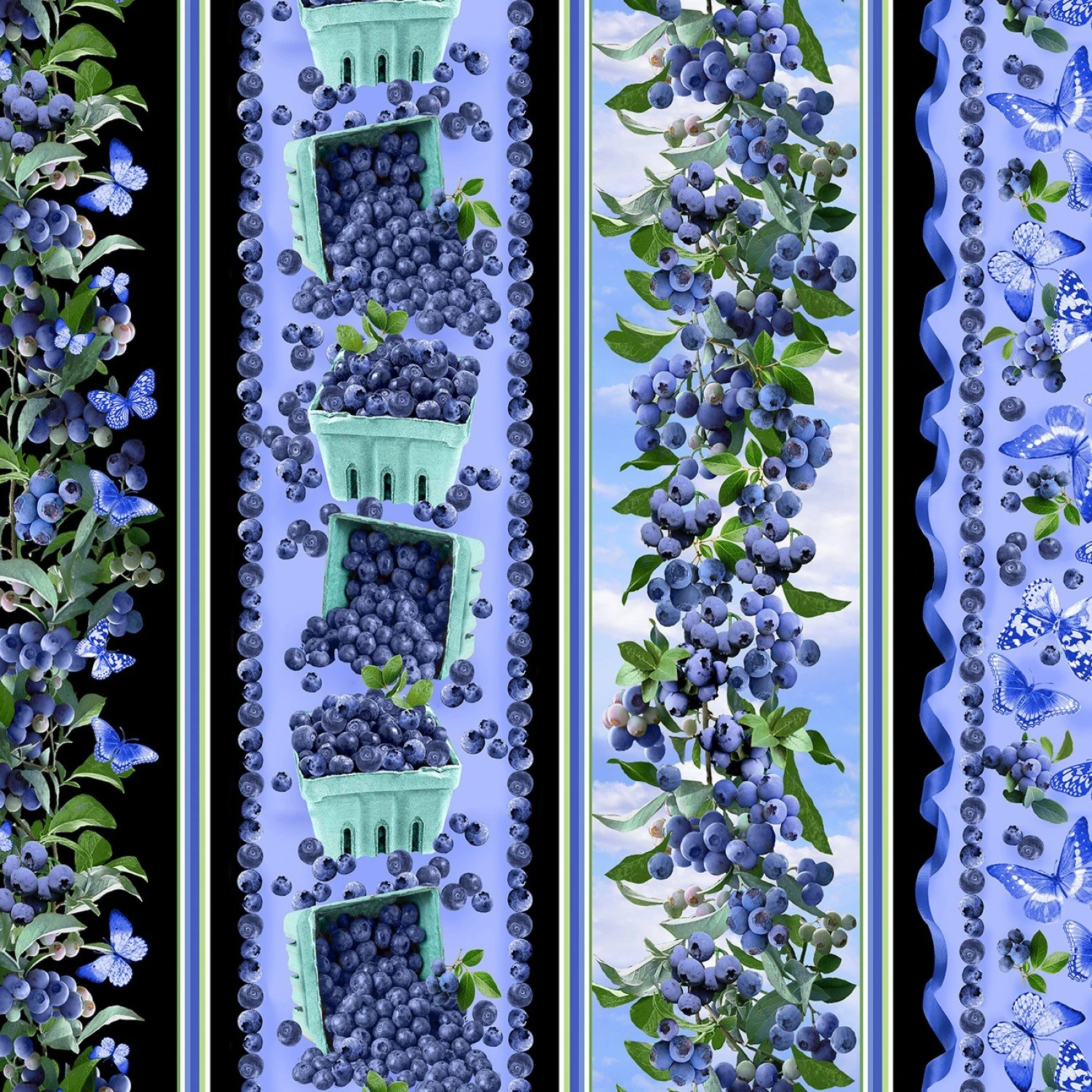 Blueberry Hill 12638 55 Blue Border Stripe Benartex Kanvas. 42″/44″ wide 100% cotton quilt shop quality quilting fabric. Benartex Kanvas Blueberry Hill Quilt Fabric Collection.