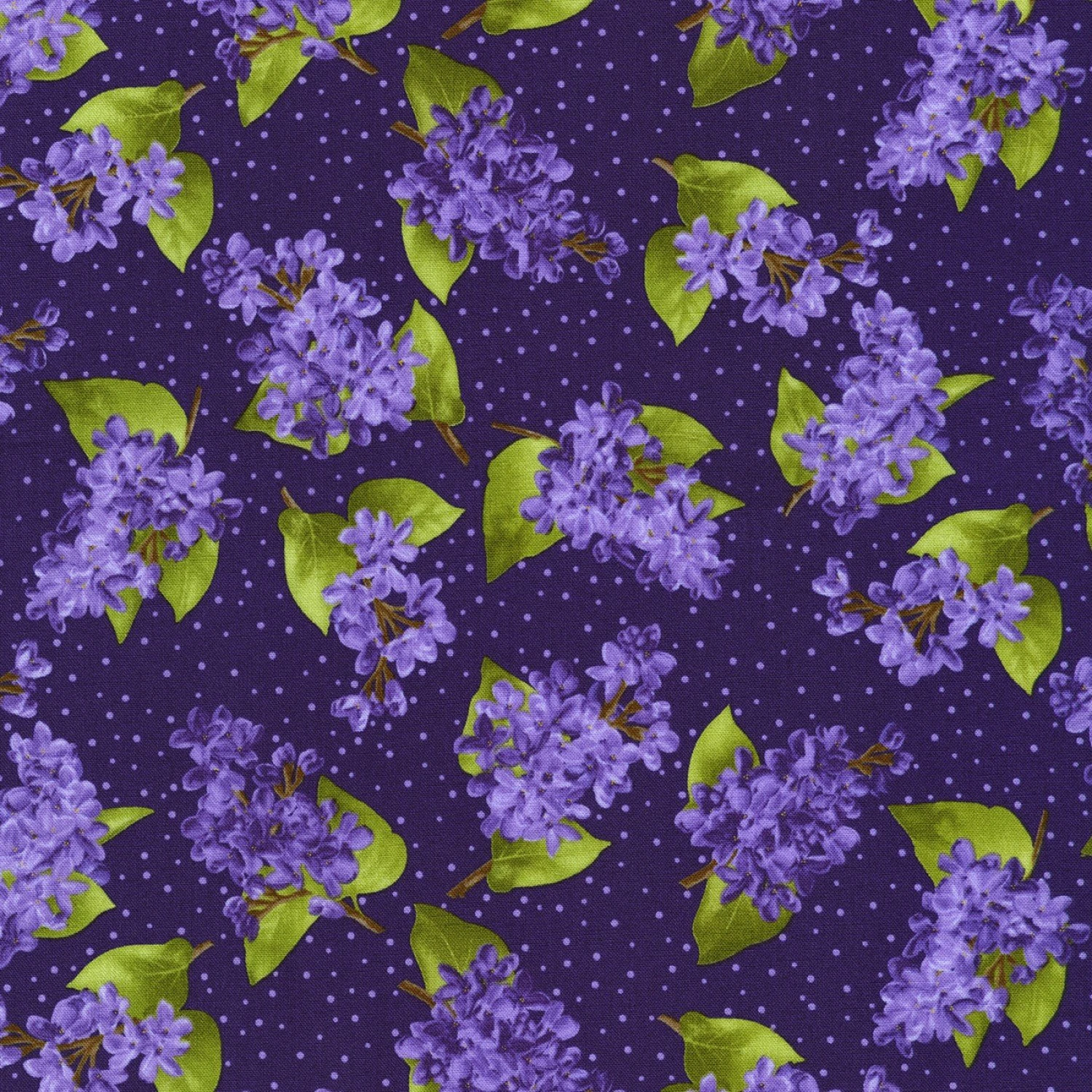 Elizabeth Collection 19894 6 Purple Lilacs Robert Kaufman. 42″/44″ wide 100% cotton quilt shop quality quilting fabric.