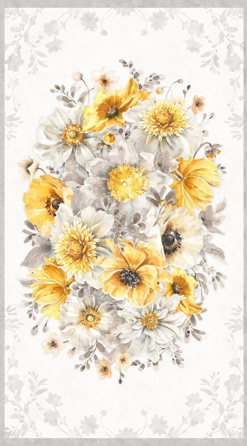Fields of Gold 86496 159 Floral Panel Wilmington Prints. 42″/44″ wide 100% cotton quilt shop quality quilting fabric. Wilmington Prints Fields of Gold Quilt Fabric Collection.