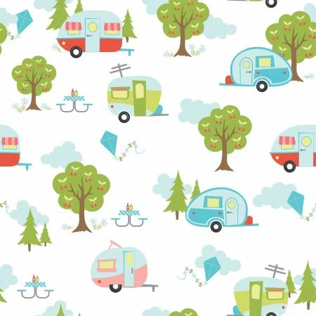Glamperlicious Flannel F7152 White Campers, Riley Blake.   42″/44″ wide 100% cotton quilt shop quality flannel quilting fabric. Riley Blake Gamperlicious flannel quilt fabric collection.