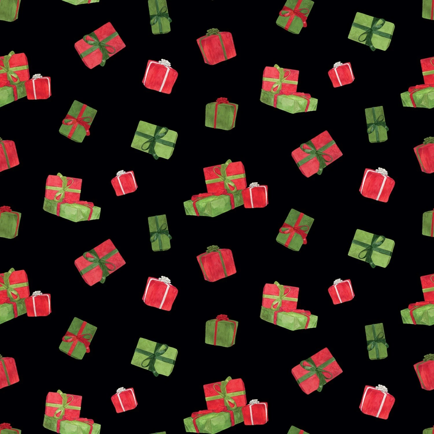 Gnome for Christmas FLANNEL F10611 Black Presents Riley Blake. 42″/44″ wide 100% cotton quilt shop quality quilting fabric.