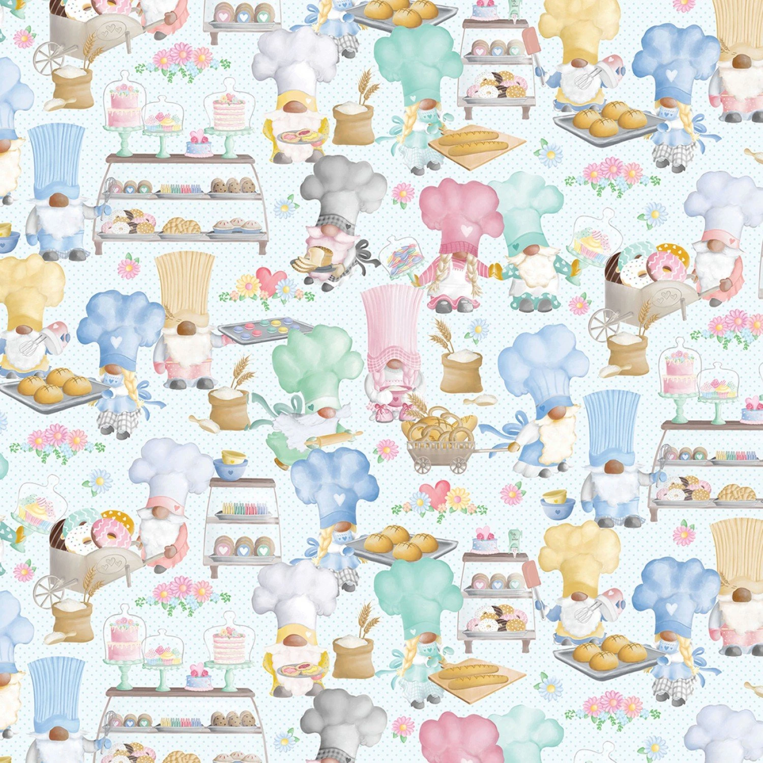 Gnomebody Bakes It Better 12829 54 Aqua Gnomes Bake Shop Benartex Kanvas