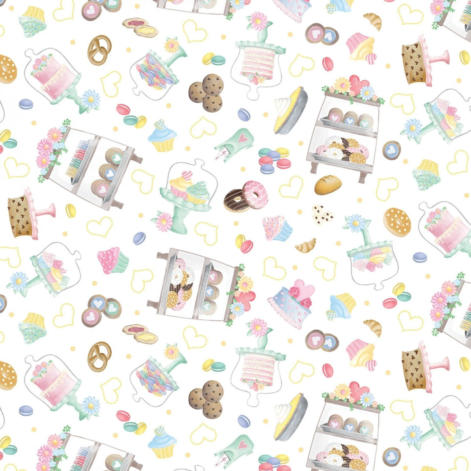 Gnomebody Bakes it Better 12833 09 White Pastry Treats Benartex Kanvas. 42″/44″ wide 100% cotton quilt shop quality quilting fabric. Benartex Kanvas Gnomebody Bakes it Better Quilt Fabric Collection.