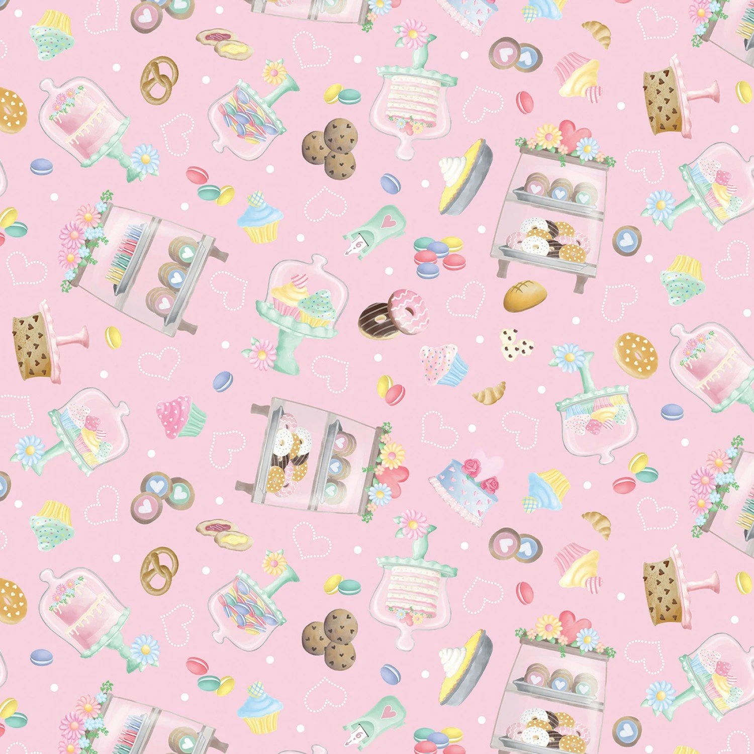 Gnomebody Bakes It Better 12833 21 Pink Pastry Treats Benartex Kanvas
