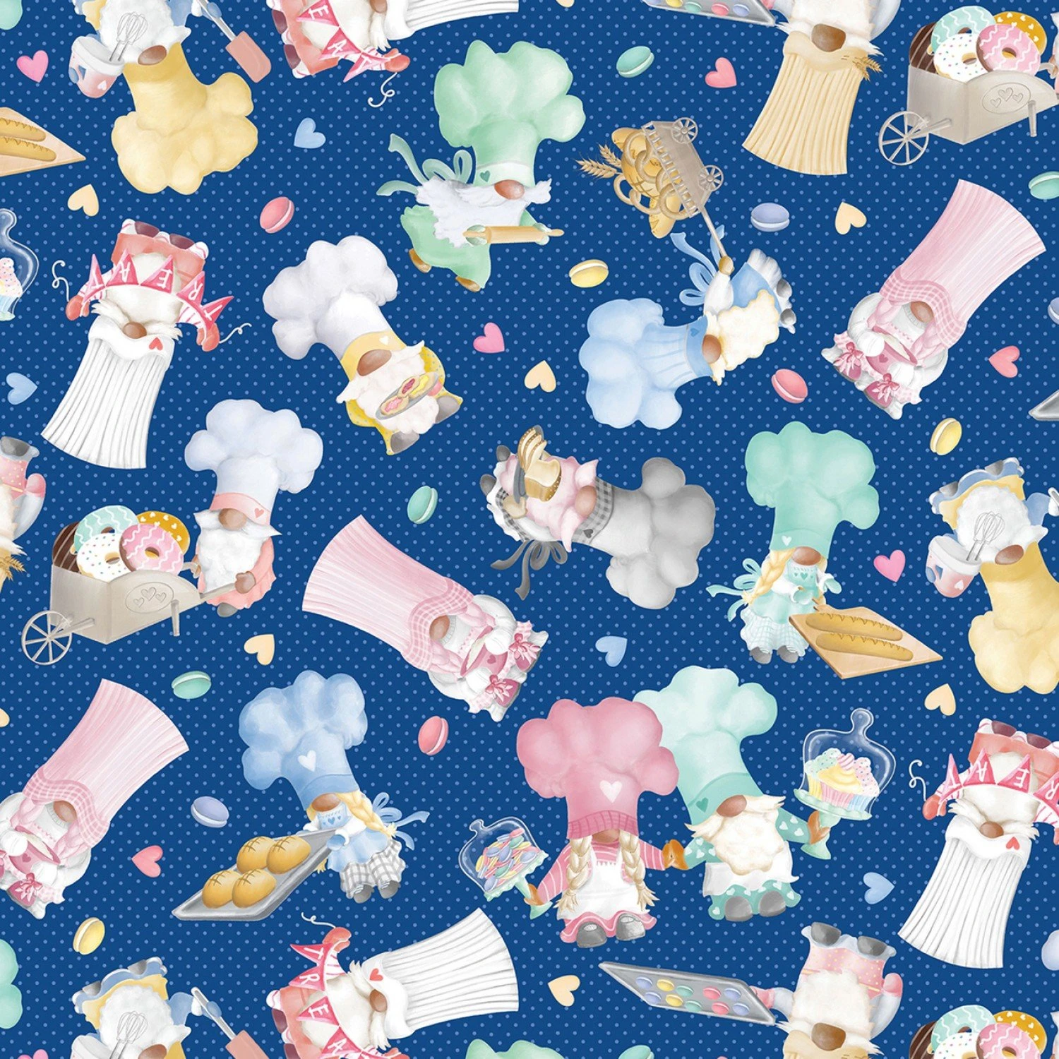 Gnomebody Bakes It Better 12834 55 Blue Sweet Gnomes Benartex Kanvas