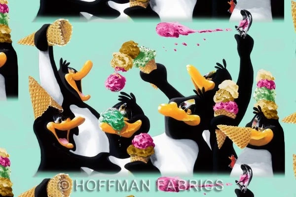 Flannel Penguins Ice Cream Cones H4010 74F Mint Hoffman. Â 42″/44″ wide 100% cotton quilt shop quality flannel quilting fabric. Hoffman Flannel quilt fabric collection.