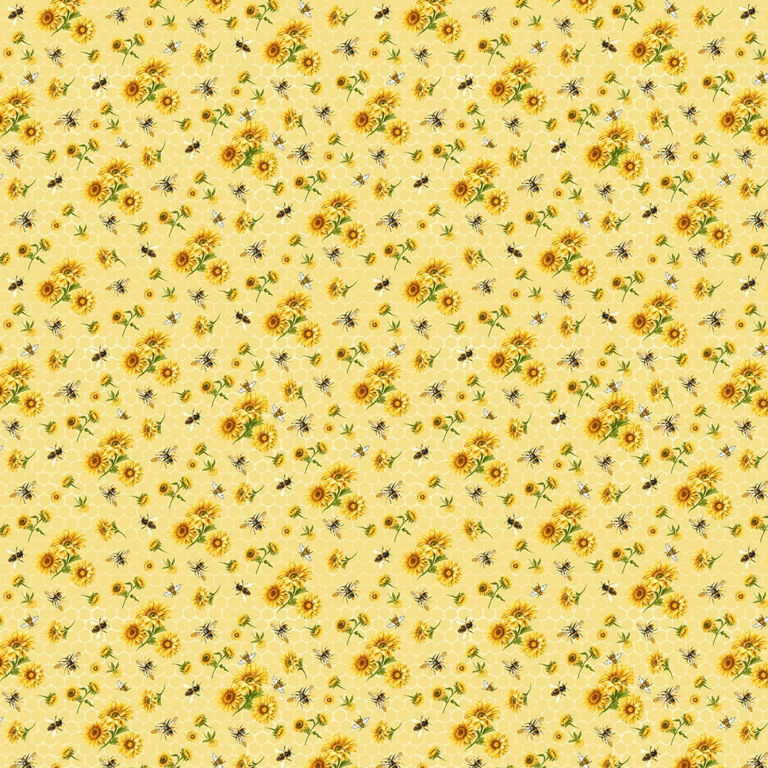 Honey Bee Farm CD2394 Yellow Bee And Sunflower Bouquets Timeless Treasures