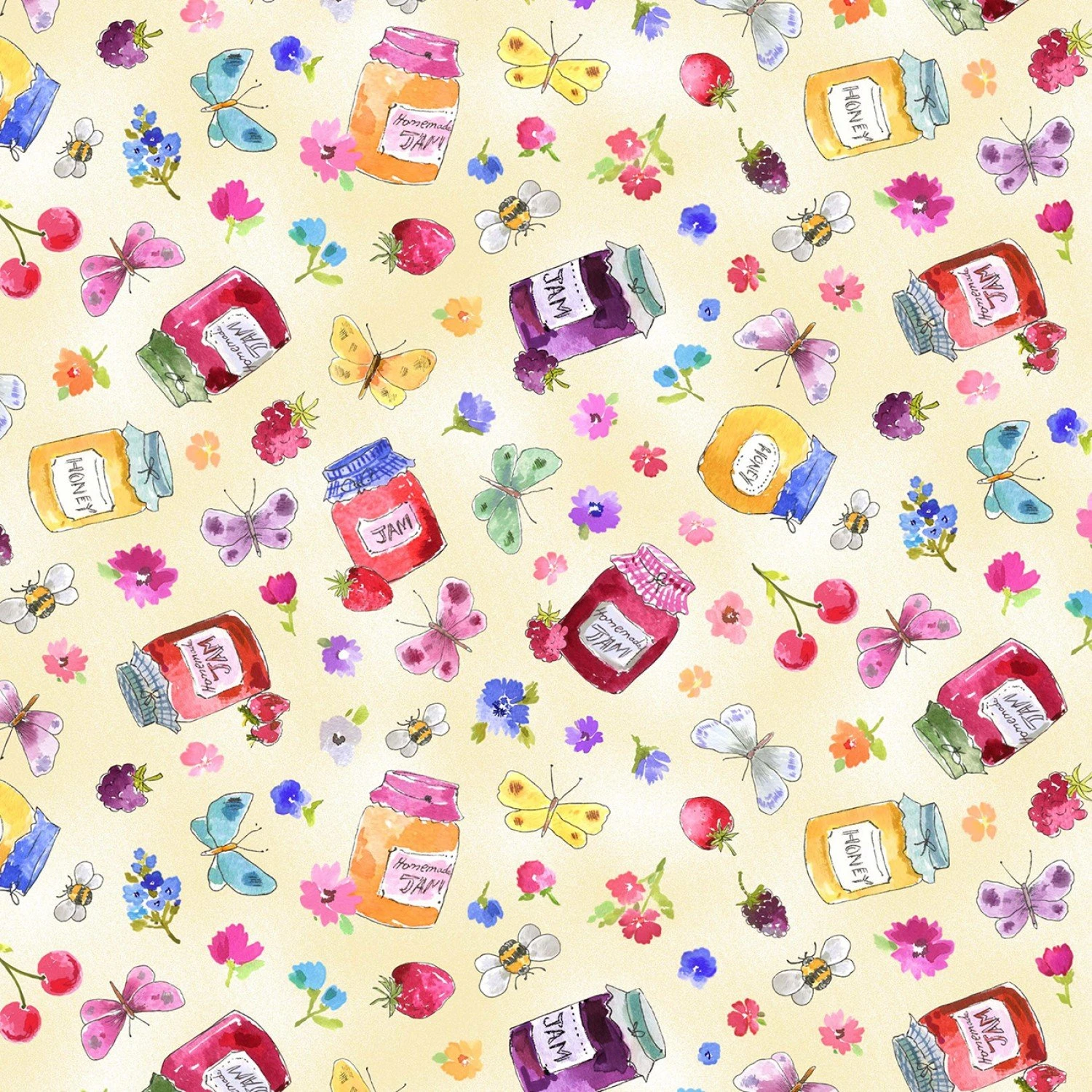 In the Garden 9487 Cream Jam Pots Michael Miller. 42″/44″ wide 100% cotton quilt shop quality quilt fabric. Michael Miller In the Garden Quilt Fabric Collection.