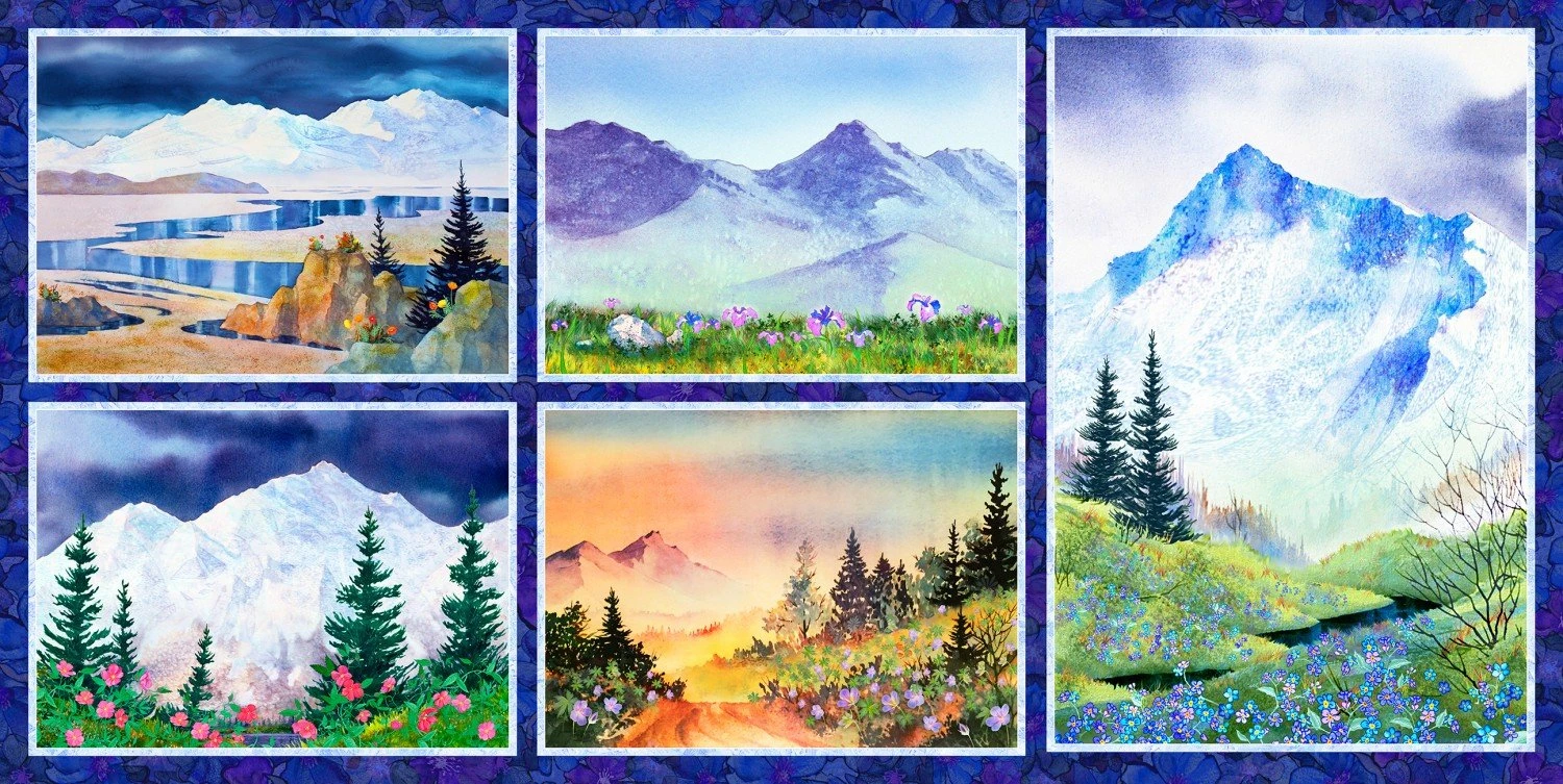 Majestic Mountains Digital Panel M3199, P and B Textiles. Approx 22” x 44” panel. 42″/44″ wide 100% cotton quilt shop quality digital print panel quilting fabric. P and B digital print panel quilt fabric collection.