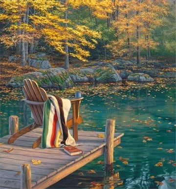 On Golden Pond DP22985 46 Digital Panel Lake Chair, Northcott. Approx 42” x 44” panel. 42″/44″ wide 100% cotton quilt shop quality digital print panel quilting fabric. Northcott On Golden Pond digital print panel quilt fabric collection.
