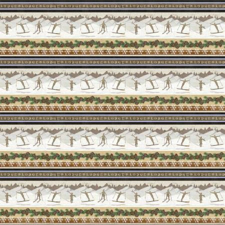 Pine Cone Lodge Flannel F9261 33 Beige Novelty Winter Stripe, Henry Glass. 42″/44″ wide 100% cotton quilt shop quality flannel quilting fabric. Henry Glass Pine Cone Lodge flannel quilt fabric collection.