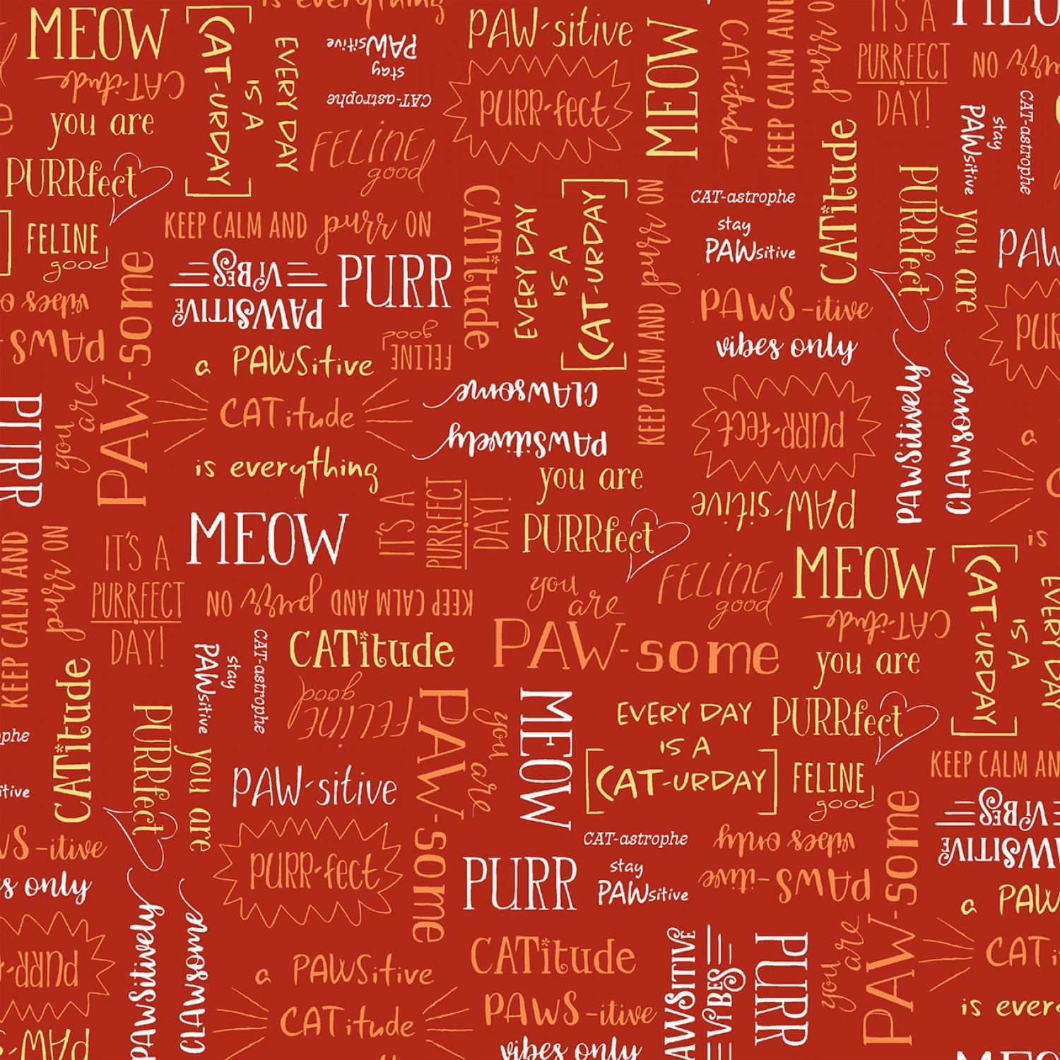 Purrfect Day 52373 3 Clay Purrfect Words Windham. 42″/44″ wide 100% cotton quilt shop quality quilting fabric.