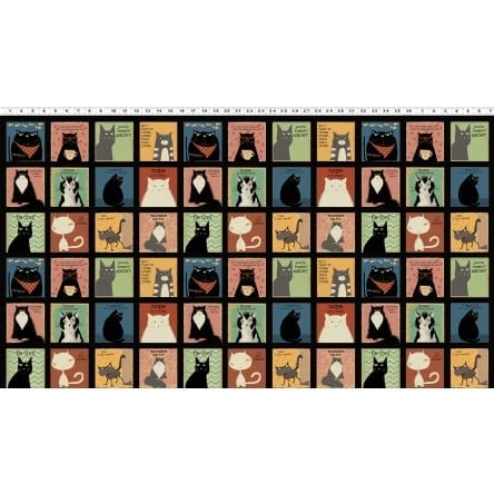 Snarky Cats Blocks Y3058 3 Black Clothworks