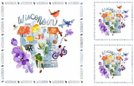 State Cotton Digital Panel Wisconsin 51558P X, Windham Fabrics. Approx 23” x 44” panel. 42″ x 44″ wide 100% cotton quilt shop quality digital print panel quilting fabric. Windham Fabrics State Cotton digital print panel quilt fabric.
