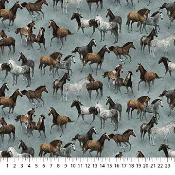 Stonehenge Frontier 25182 64 Blue Horses Northcott