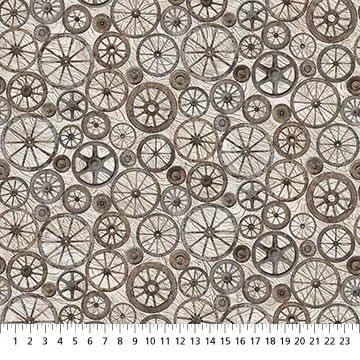 Stonehenge Frontier 25184 12 Wheels Northcott. 42″/44″ wide 100% cotton quilt shop quality quilting fabric. Northcott Stonehenge Frontier Western Horse Quilt Fabric Collection.