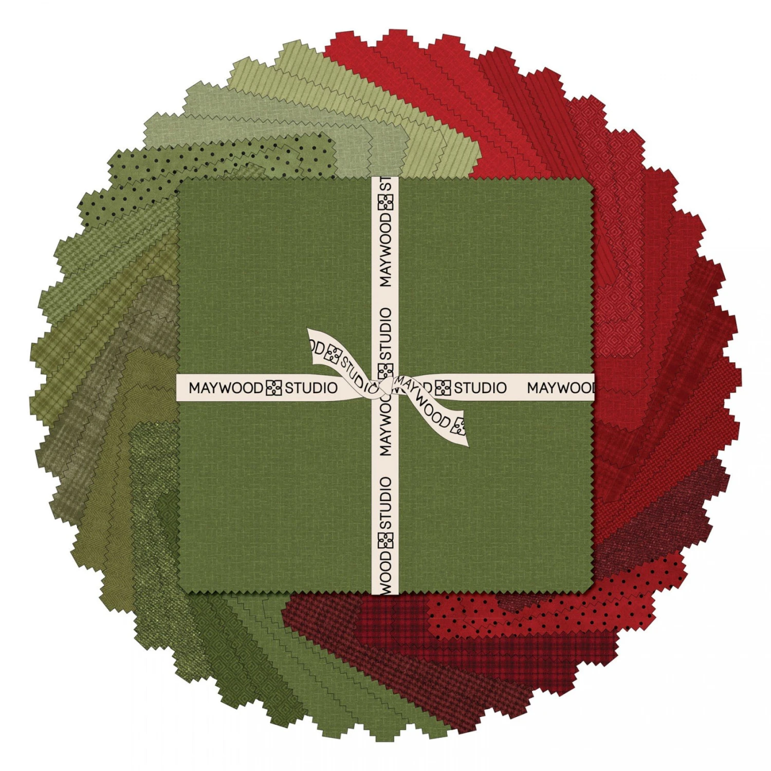 Woolies Holiday Warmth Flannel Raggy Cakes Quilt Kit Maywood Studio. Approx 54″ x 63″. Includes 2 10″ layer cakes of 42 squares each for front/back of ragtime quilt. Basic pattern included. For a larger quilt: try 4 layer cakes or 2 raggy cakes packs for 76″ x 95″.
